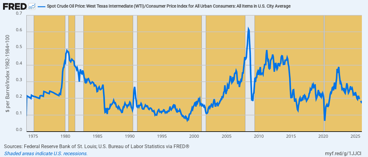 Index of Constant Dollar Oil Price, 1974 to 2025